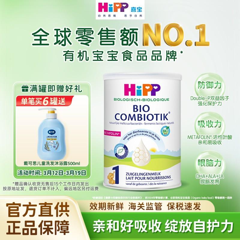【6罐满赠】【品牌直供】荷兰喜宝有机益生菌奶粉1段800g(新包装)