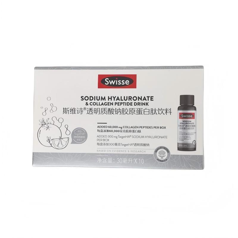国内发货 Swisse斯维诗 透明质酸钠 胶原蛋白肽饮料 30ml*10瓶【新版白盒水光瓶】